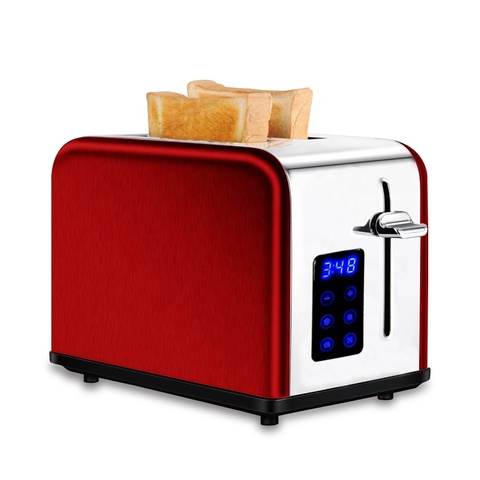 2022เครื่องปิ้งขนมปังเครื่องนับจำนวนหน้าจอสัมผัส LCD ดิจิตอลแบบ2ชิ้นทำจากสแตนเลสสตีลสำหรับบ้านคาเฟ่โรงแรมครัวแหล่งจ่ายไฟฟ้า